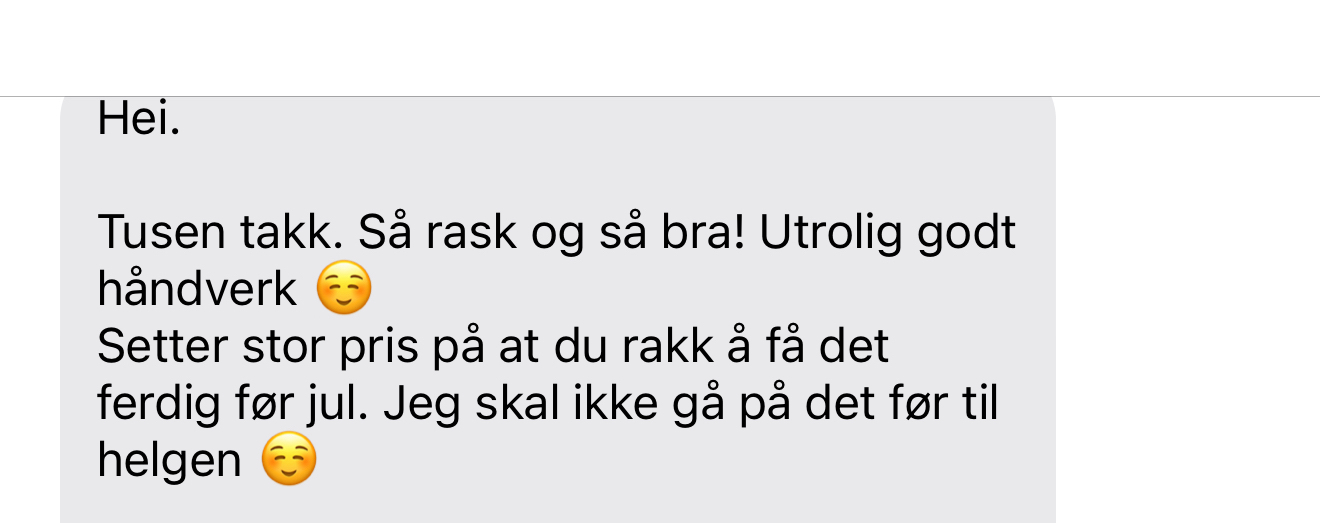 Arbeidet ble utført til avtalt tid og resultatet ble meget bra.